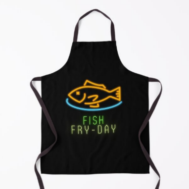 Your family fish fry cook will look sizzlin’ hot in their very own personalized Fish Fry Friday apron. Howeeee, looks like Fish Fry Friday!