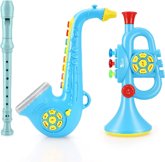 Introduce young readers to a variety of instruments with this set of non-toxic, BPA-free miniatures. Includes a trombone, flute, saxophone, classical guitar, violin, French horn, trumpet, and clarinet.